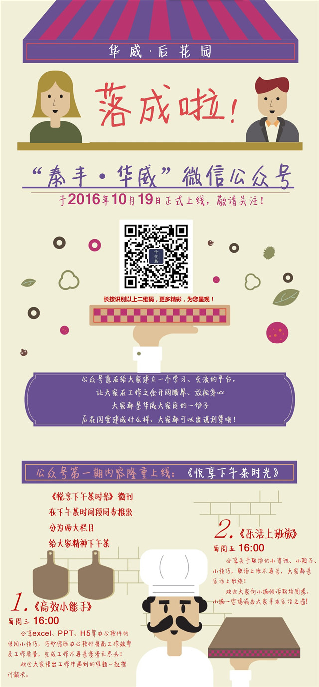 自2016年10月起,伴著下午茶的供應,人資行政部還推出了給大腦補充能量的“下午茶”——《悅享下午茶時光》微刊,每周三、周五下午4點,通過內(nèi)部微信公眾號跟大家分享各種搜羅而來的辦公軟件操作技巧、職場文章,幾分鐘時間,給大腦迅速充電。